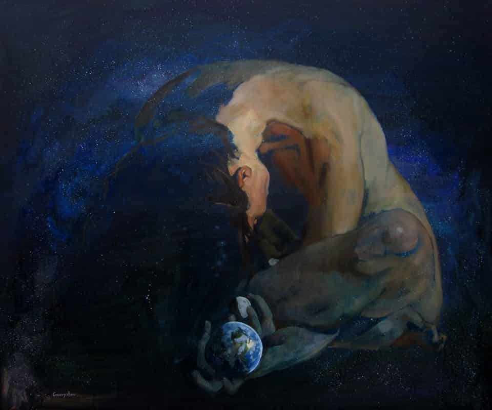 Artist: OLEKSII GNIEVYSHEV Original Contemporary Figurative art collection Step into the realm of mythology through the captivating painting “Gaia,” a masterpiece by